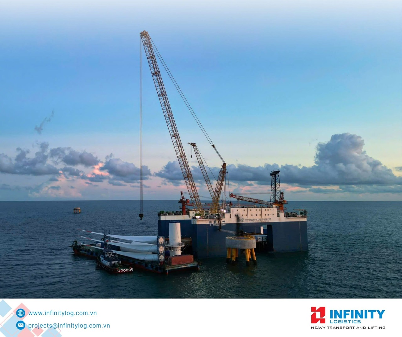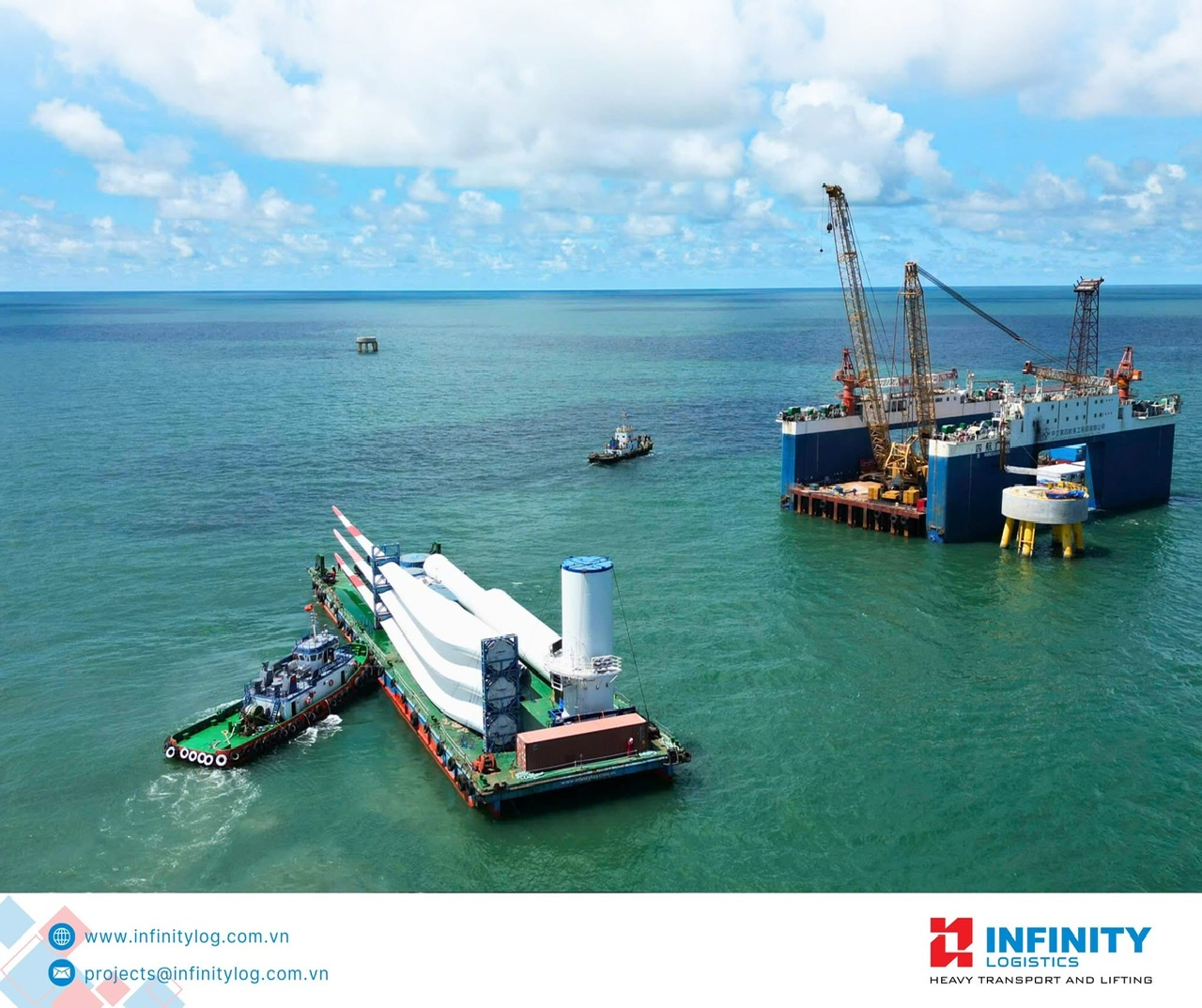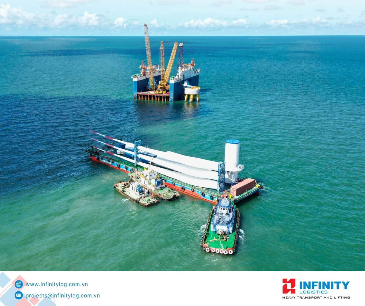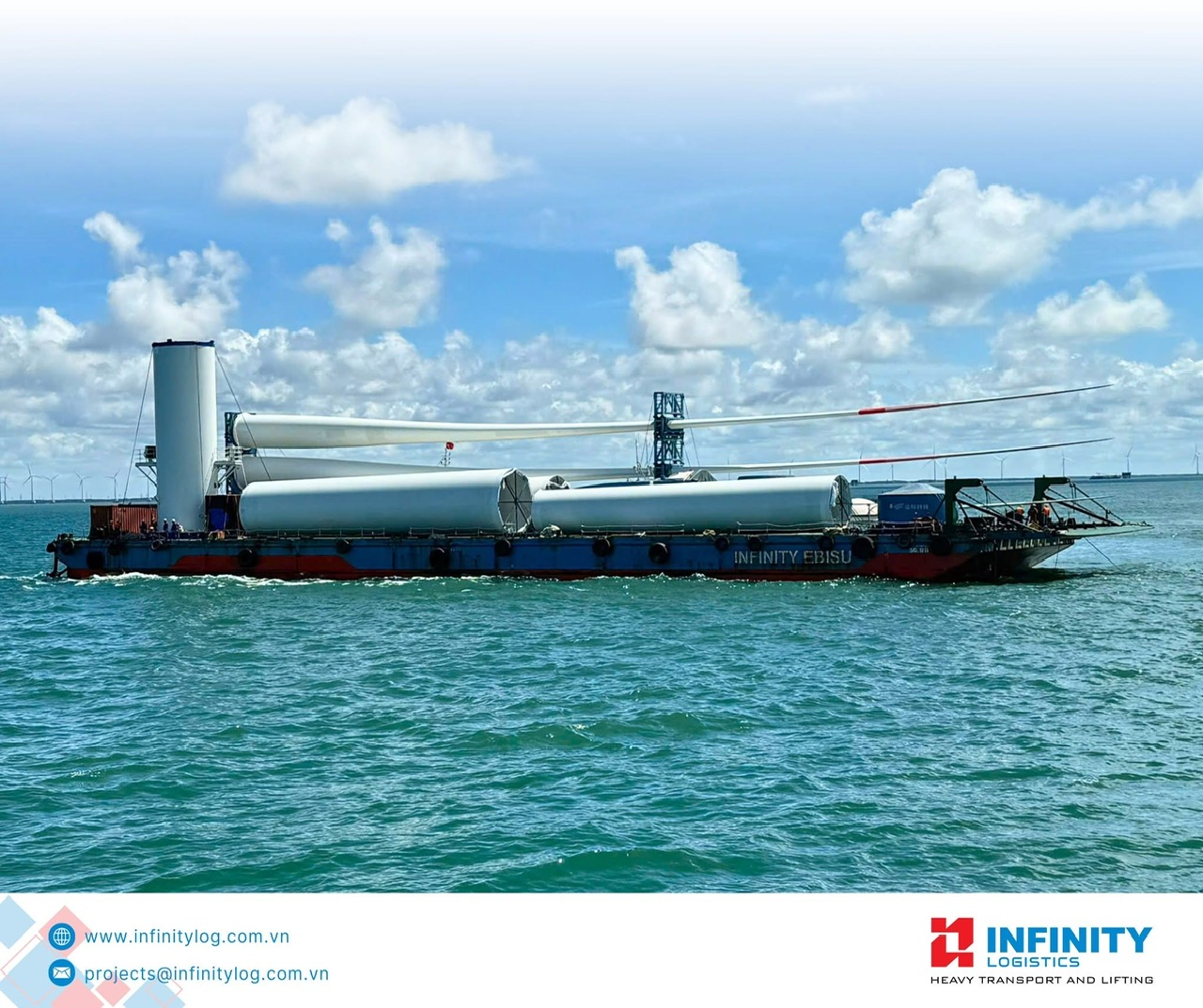 - Transporting wind turbine equipment by barges to construction site in Bac Lieu Province